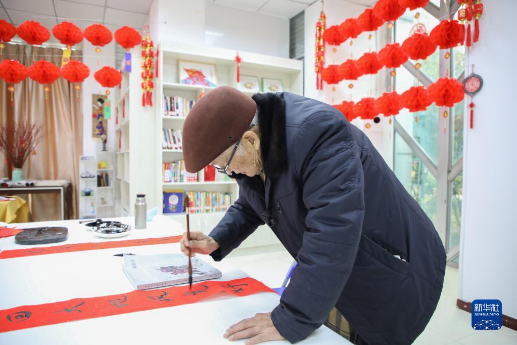 貴陽市觀山湖區(qū)金陽街道金元社區(qū)書屋內(nèi),一名老人正在練習(xí)書法(2月4日攝)。新華社記者 劉續(xù) 攝