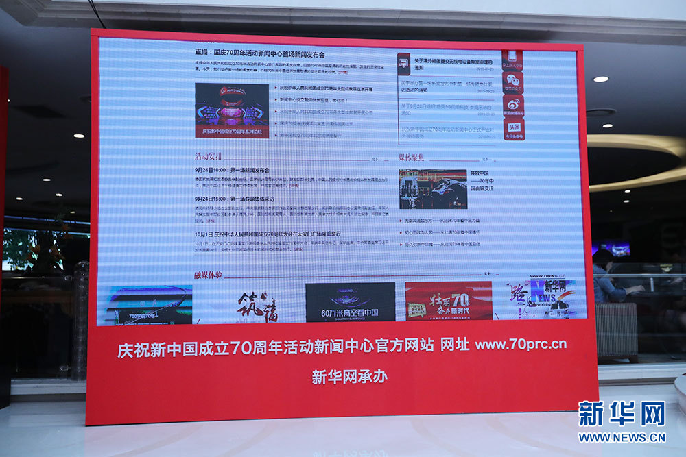 9月24日,慶祝中華人民共和國(guó)成立70周年活動(dòng)新聞中心在北京梅地亞中心二層新聞發(fā)布廳舉辦第一場(chǎng)新聞發(fā)布會(huì)。圖為新聞中心現(xiàn)場(chǎng)。新華網(wǎng) 雷東瑞 攝