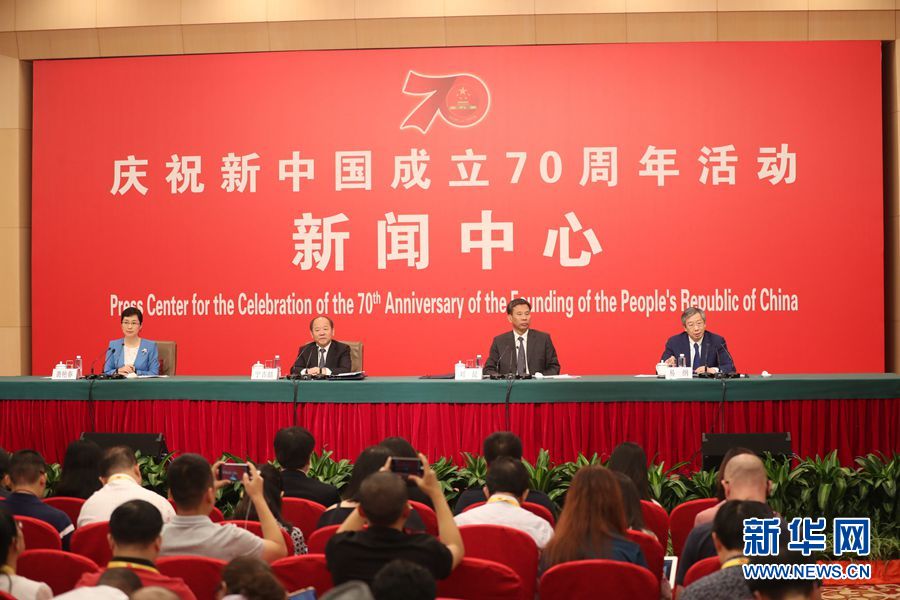 9月24日,慶祝中華人民共和國成立70周年活動新聞中心在北京梅地亞中心二層新聞發(fā)布廳舉辦第一場新聞發(fā)布會。圖為新聞發(fā)布會現(xiàn)場。新華網記者 陳競超 攝