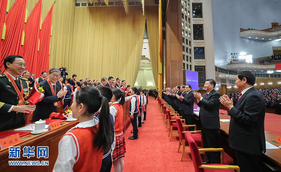 12月18日,慶祝改革開放40周年大會在北京人民大會堂隆重舉行。中共中央總書記、國家主席、中央軍委主席習近平在大會上發(fā)表重要講話。這是習近平等鼓掌向受表彰人員表示祝賀。 新華社記者 鞠鵬 攝