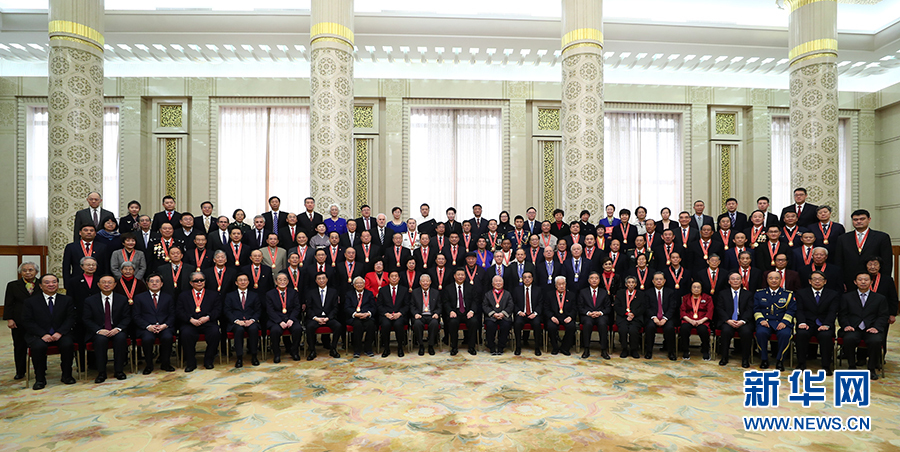 12月18日,慶祝改革開放40周年大會在北京人民大會堂隆重舉行。中共中央總書記、國家主席、中央軍委主席習近平在大會上發(fā)表重要講話。這是慶祝大會結束后,習近平等同受表彰人員及親屬代表合影留念。 新華社記者 謝環(huán)馳 攝