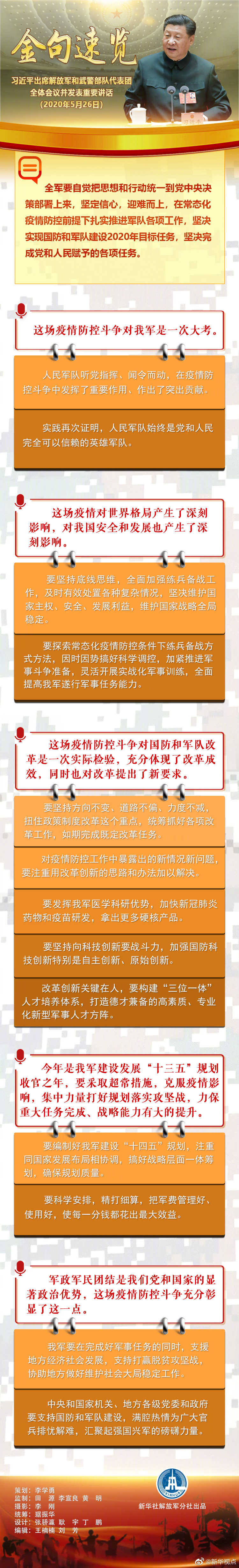 長圖海報:習(xí)近平出席解放軍和武警部隊代表團(tuán)全體會議金句速覽-新華網(wǎng)