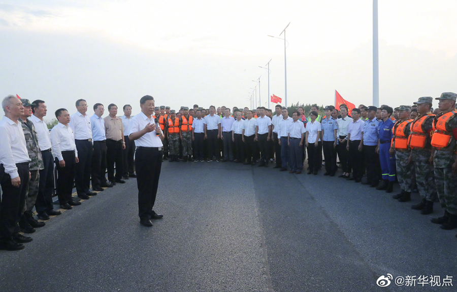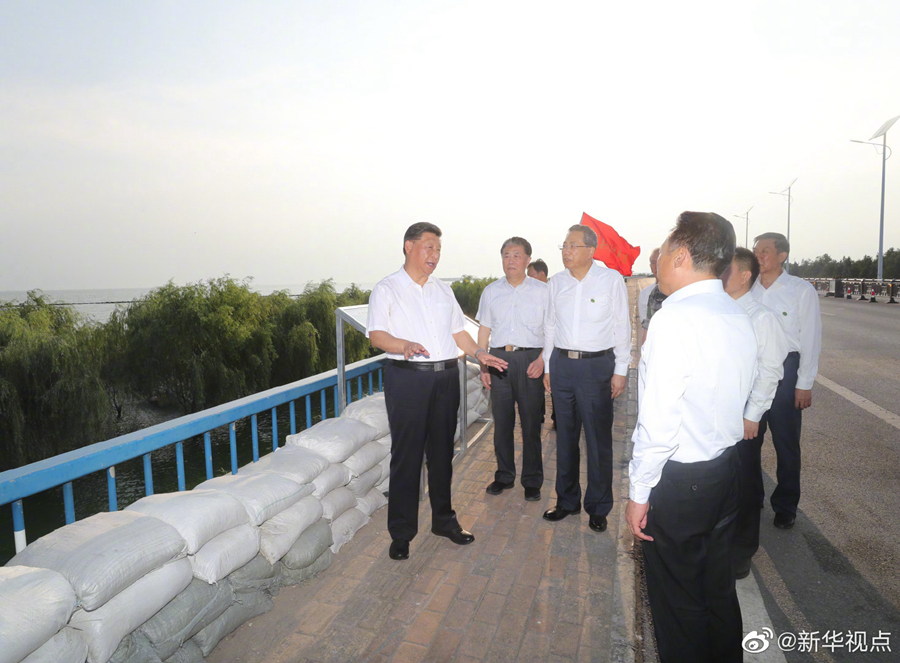 習(xí)近平總書記19日下午在安徽省合肥市考察調(diào)研。他在肥東縣十八聯(lián)圩生態(tài)濕地蓄洪區(qū)巢湖大堤羅家疃段,察看巢湖水勢水情,看望慰問防汛抗洪一線人員、先進典型代表和參加抗洪搶險的解放軍、武警部隊官兵。當(dāng)天下午,習(xí)近平在合肥還參觀了安徽創(chuàng)新館和渡江戰(zhàn)役紀念館,了解安徽省科技創(chuàng)新和新興產(chǎn)業(yè)發(fā)展情況,重溫革命歷史、緬懷革命先烈。(文字記者:張曉松 攝影記者:鞠鵬 王曄 燕雁)