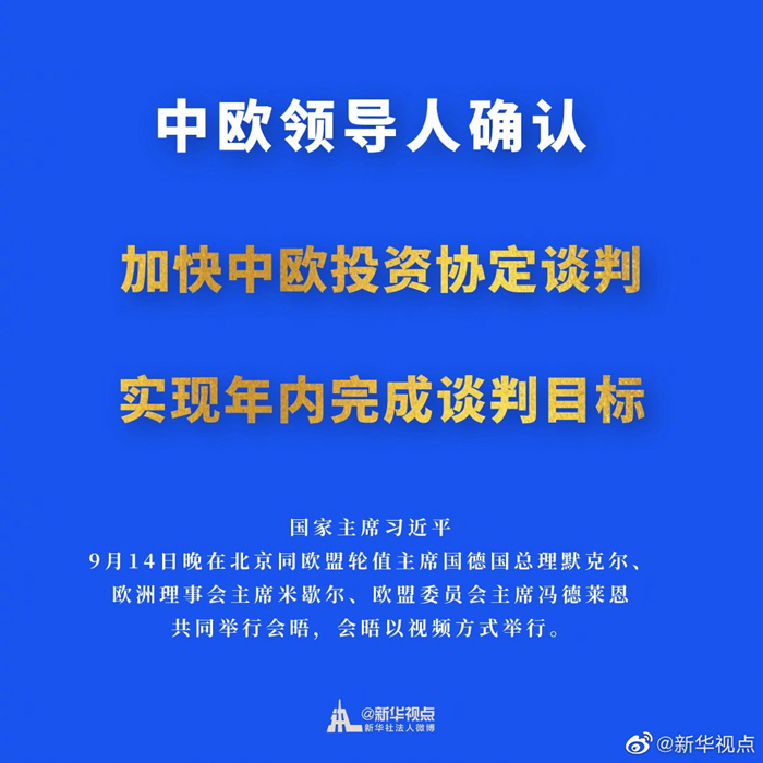 中歐領導人確認,加快中歐投資協(xié)定談判,實現(xiàn)年內完成談判的目標。 ????