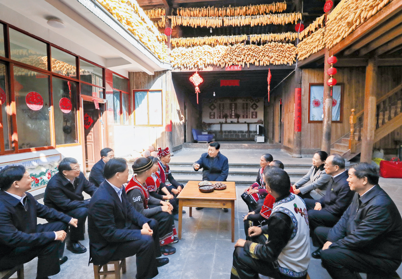 2020年1月19日至21日,中共中央總書記、國家主席、中央軍委主席習近平來到云南,看望慰問各族干部群眾,向全國人民致以新春祝福。這是19日下午,習近平在騰沖市清水鄉(xiāng)三家村中寨司莫拉佤族村,同村民李發(fā)順一家聊家常,詳細詢問脫貧情況。 新華社記者 鞠鵬/攝