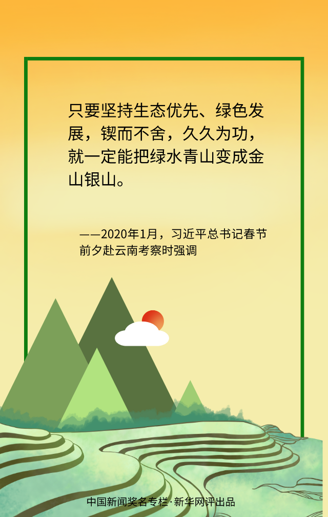 綠色發(fā)展道阻且長,但行則將至。生態(tài)治理、實現(xiàn)人與自然和諧共生仍有不少“硬骨頭”要啃。我們既要有除弊治病的決心,又要有遵循規(guī)律辦事的自覺,既要有只爭朝夕的精神,更要有持之以恒的堅守,以綿綿之力久久為功,腳踏實地地推進美麗中國建設(shè),一處處“詩意棲居”的綠水青山必將變成一座座金山銀山。(文字:徐可 海報:滕華)