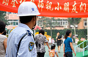 天津中小學(xué)開學(xué) 校園保安帶4斤裝備上崗