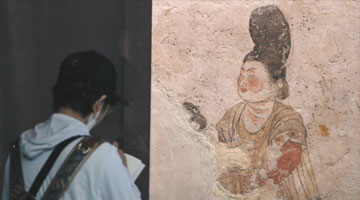 5月16日,观众在参观展出的西周时期车马坑。
