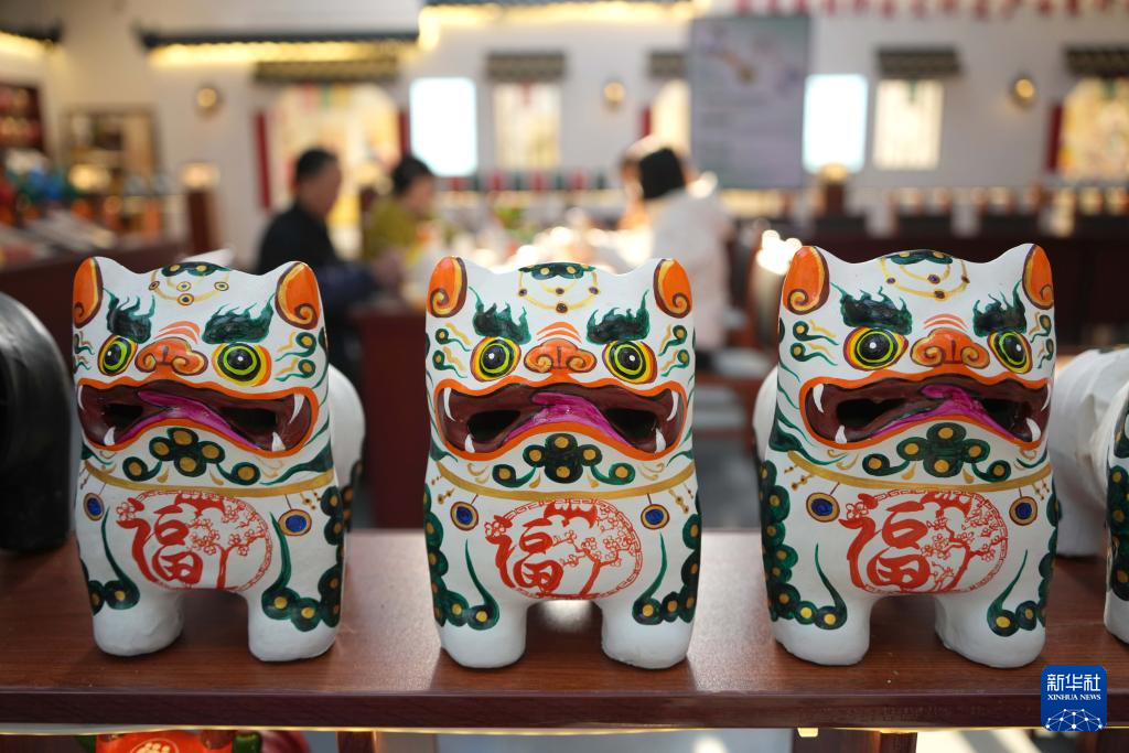 3月19日拍摄的姜庄镇的一家工坊内陈列的泥老虎产品。