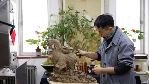 春节的脚步越来越近,年味儿渐浓。在天津泥人张彩塑工作室里,大家正在为马年新春忙碌着。工作台前,工艺美术师凝神运指——湿润的陶土在他们的掌间逐渐苏醒,肌理渐显,骨骼渐成,泥土被赋予了奔腾的温度。