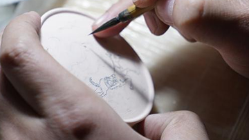 曹浪在创作青花瓷(3月11日摄)。