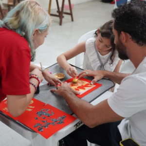 书法台前,生涩的笔锋描摹着横竖撇捺;武术教室内,一招一式引来屏息凝神的注视与模仿;剪纸体验区,指尖翻飞处一张张红纸幻化成灵动的图案;考古展台旁,展品无声讲述着中国历史的厚重与悠长。