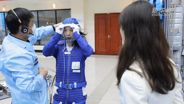 這里是離心機(jī)訓(xùn)練場(chǎng)。離心機(jī)由一個(gè)八米長(zhǎng)的旋轉(zhuǎn)臂和飛行模擬座艙組成,它所產(chǎn)生的離心力通常用地心引力的倍數(shù)表示。例如2G等于兩倍地球引力,大概相當(dāng)于過(guò)山車從最高點(diǎn)急速俯沖到最低點(diǎn)時(shí)的壓迫感。普通人最多能承受4G的離心力,而像亞平一樣的航天員則要進(jìn)行8G的過(guò)載訓(xùn)練。