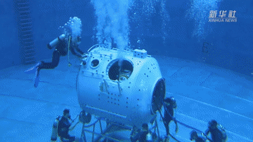 這里是航天員模擬失重水槽訓(xùn)練場(chǎng)。當(dāng)飛船繞地心運(yùn)動(dòng)時(shí),會(huì)產(chǎn)生失重。航天員要在失重狀態(tài)下進(jìn)行空間出艙活動(dòng)和裝配維修等任務(wù)。實(shí)踐證明,模擬失重水槽訓(xùn)練是在地面上進(jìn)行航天員艙外活動(dòng)訓(xùn)練的最為有效方法。