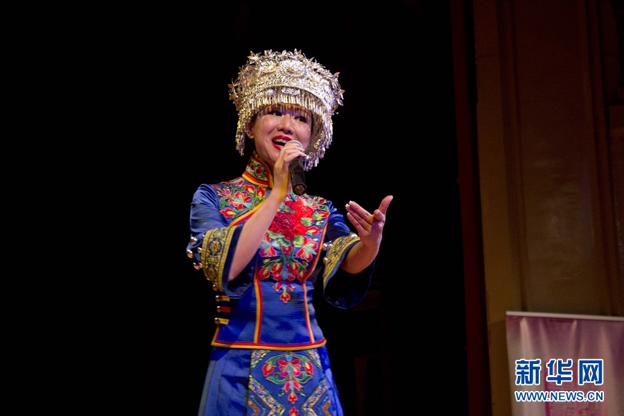 來自中南民族大學(xué)的演員在臺(tái)上表演。新華網(wǎng)發(fā) Xesco攝