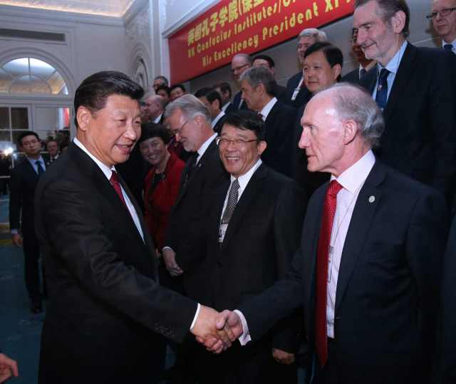 習(xí)近平在致辭中指出,多年來,孔子學(xué)院和孔子課堂的教職工為介紹中華文化、溝通人民心靈、搭建友誼橋梁傾注了大量熱情和心血,取得了可喜成績(jī)??吹接?guó)有這么多老師和學(xué)生在教授和學(xué)習(xí)漢語,尤其看到有這么多英國(guó)學(xué)生對(duì)中國(guó)語言文化感興趣,我感到很高興。
