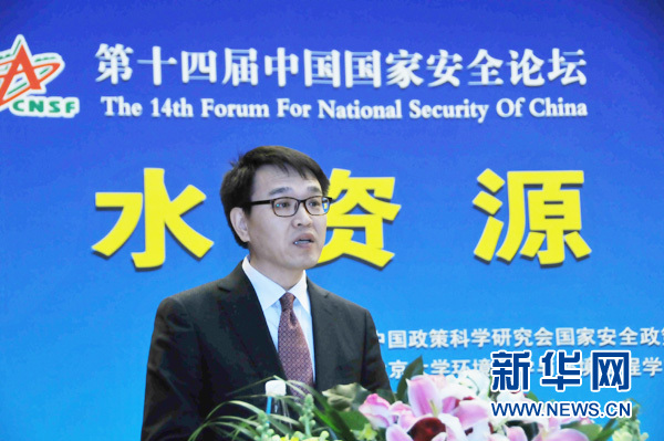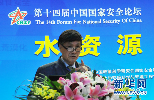 12月19日,以“水資源與國家安全”為主題的第十四屆中國國家安全論壇在北京舉行。圖為國家環(huán)保部總工程師趙英民在論壇上做主題報告。(雷東瑞 攝)