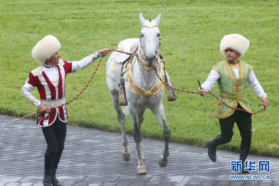 新華社阿什哈巴德4月23日電(記者盧敬利)為慶祝阿哈爾捷金馬(中國稱汗血馬)節(jié),土庫曼斯坦23日在總統(tǒng)馬場舉行了汗血馬選美大賽。一匹名為“別格汗”的鼠灰色8歲馬受到評委們的青睞,贏得2016年度“最美汗血馬”稱號。