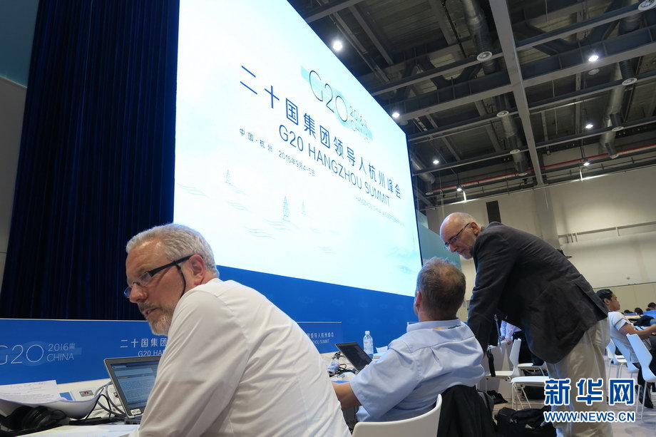 二十國集團(tuán)工商峰會(huì)(B20)于9月3日至4日在杭州舉辦。作為G20機(jī)制的重要配套活動(dòng),B20是各國工商界參與全球經(jīng)濟(jì)治理和推動(dòng)世界經(jīng)濟(jì)增長(zhǎng)的重要平臺(tái)。圖為工商峰會(huì)開幕當(dāng)天,新聞中心內(nèi)記者忙碌的身影。新華網(wǎng) 陳競(jìng)超 攝