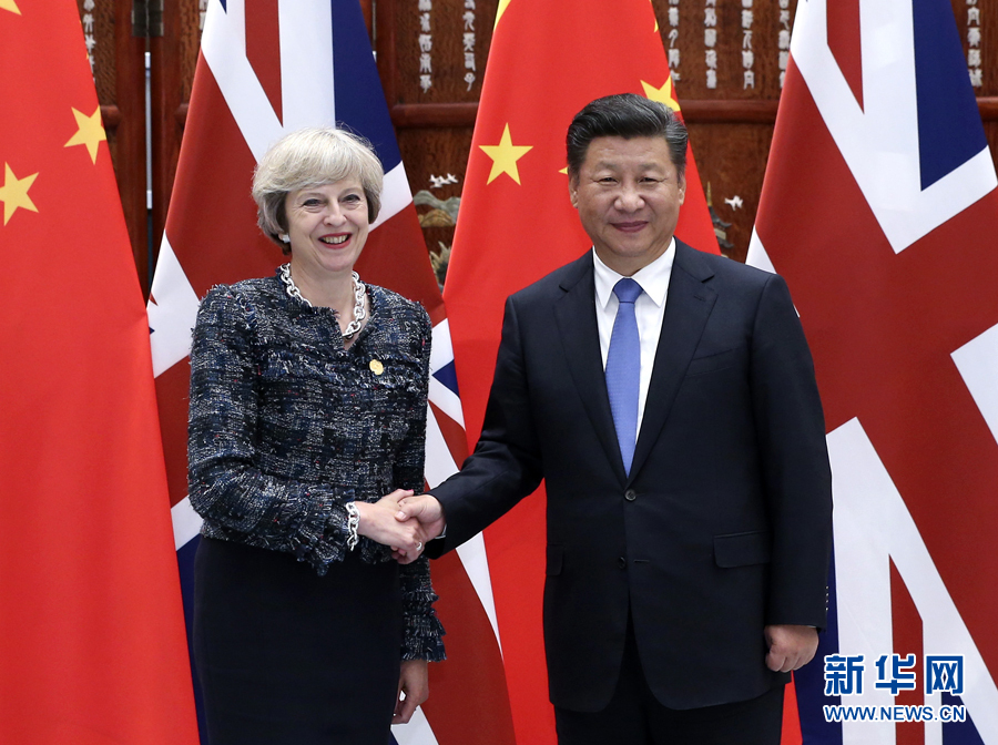 9月5日,國家主席習(xí)近平在杭州會見來華出席二十國集團(tuán)領(lǐng)導(dǎo)人峰會的英國首相特雷莎·梅。 新華社記者龐興雷攝
