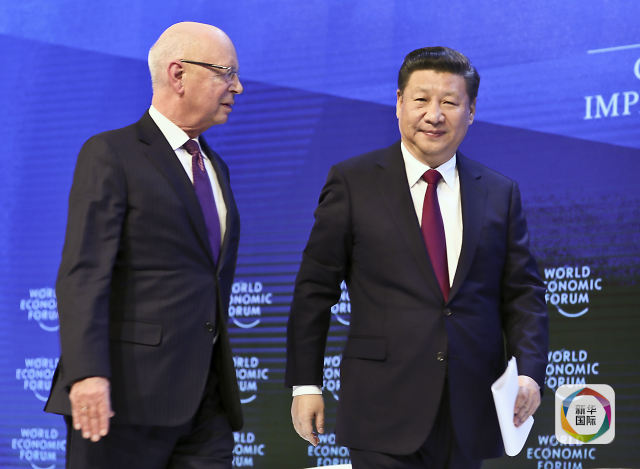 1月17日,國(guó)家主席習(xí)近平在瑞士達(dá)沃斯國(guó)際會(huì)議中心出席世界經(jīng)濟(jì)論壇2017年年會(huì)開幕式,并發(fā)表題為《共擔(dān)時(shí)代責(zé)任 共促全球發(fā)展》的主旨演講。這是習(xí)近平同世界經(jīng)濟(jì)論壇創(chuàng)始人兼執(zhí)行主席施瓦布在一起。(新華社記者 蘭紅光 攝)