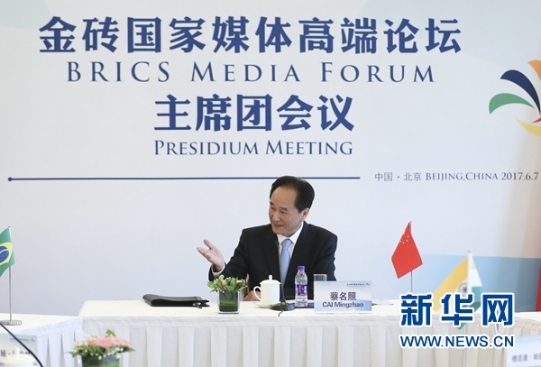 論壇執(zhí)行主席、新華社社長蔡名照主持會議,巴西金融資訊集團、今日俄羅斯國際新聞通訊社、印度教徒報集團、南非獨立傳媒集團等媒體機構負責人作為共同主席出席。