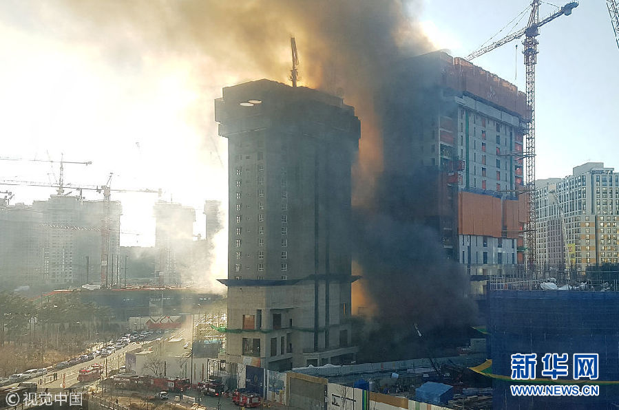 韓國水原市建筑工地發(fā)生火災 現(xiàn)場濃煙滾滾