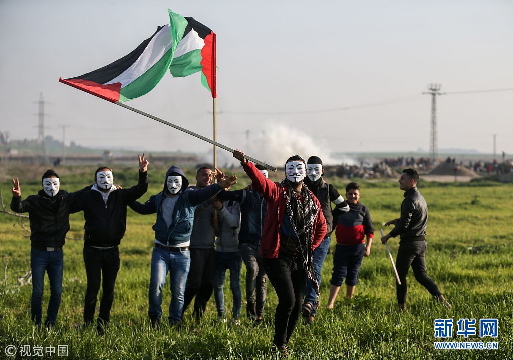 當(dāng)?shù)貢r(shí)間2月2日,加沙,巴勒斯坦示威者與以色列士兵發(fā)生沖突;一巴勒斯坦樂隊(duì)在沖突中開音樂會(huì)。(圖片來源:視覺中國(guó))