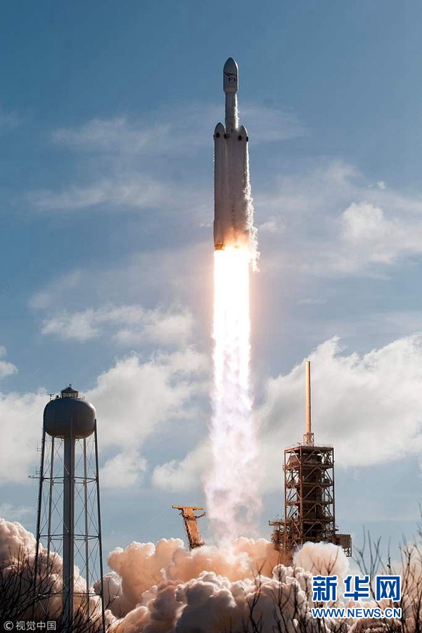 當?shù)貢r間2018年2月6日,美國佛州卡納維拉爾角,美國重型運載火箭“獵鷹重型”6日攜帶一輛特斯拉跑車發(fā)射升空。(圖片來源:視覺中國)