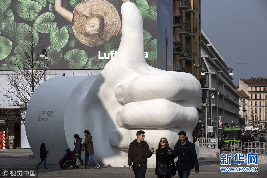 當(dāng)?shù)貢r(shí)間2018年3月25日,意大利米蘭,一座在社交媒體上代表“點(diǎn)贊”的雕塑出現(xiàn)在加里波第門(mén)旁。 (圖片來(lái)源:視覺(jué)中國(guó))