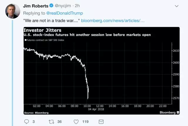 昨天,特朗普發(fā)了他“貿(mào)易戰(zhàn)”之后的首條推特……