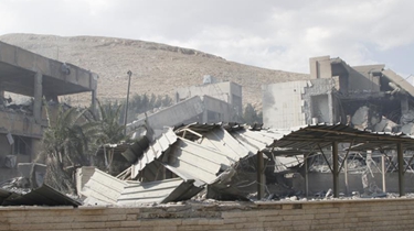 在敘利亞首都大馬士革東北部的拜爾宰區(qū),一處科研中心成為14日凌晨美英法軍事打擊敘利亞的目標(biāo)之一。襲擊發(fā)生后,記者看到成片的建筑已淪為廢墟。2018-04-15 11:47:02