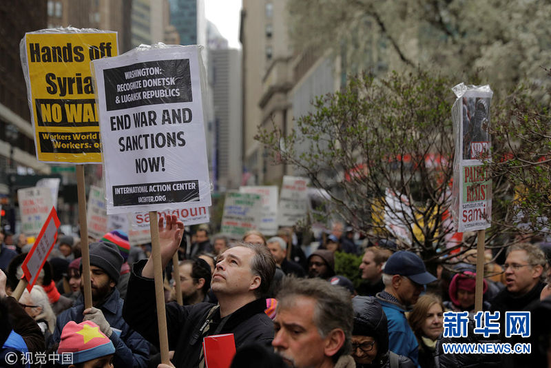 美國民眾舉行反戰(zhàn)游行 抗議美英法聯(lián)軍襲擊敘利亞