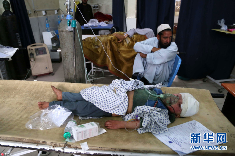 當?shù)貢r間2018年4月20日,阿富汗賈拉拉巴德,受傷的兒童在醫(yī)院接受治療。4月19日,當?shù)匕l(fā)生爆炸事故,致至少5名平民死亡,14人受傷。(圖片來源:東方IC)