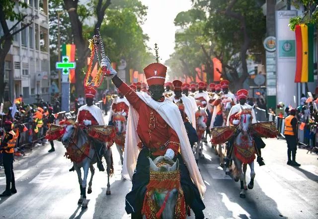 塞內(nèi)加爾當?shù)孛癖娚碇?jié)日盛裝,夾道歡迎習近平主席。(新華社記者燕雁攝)