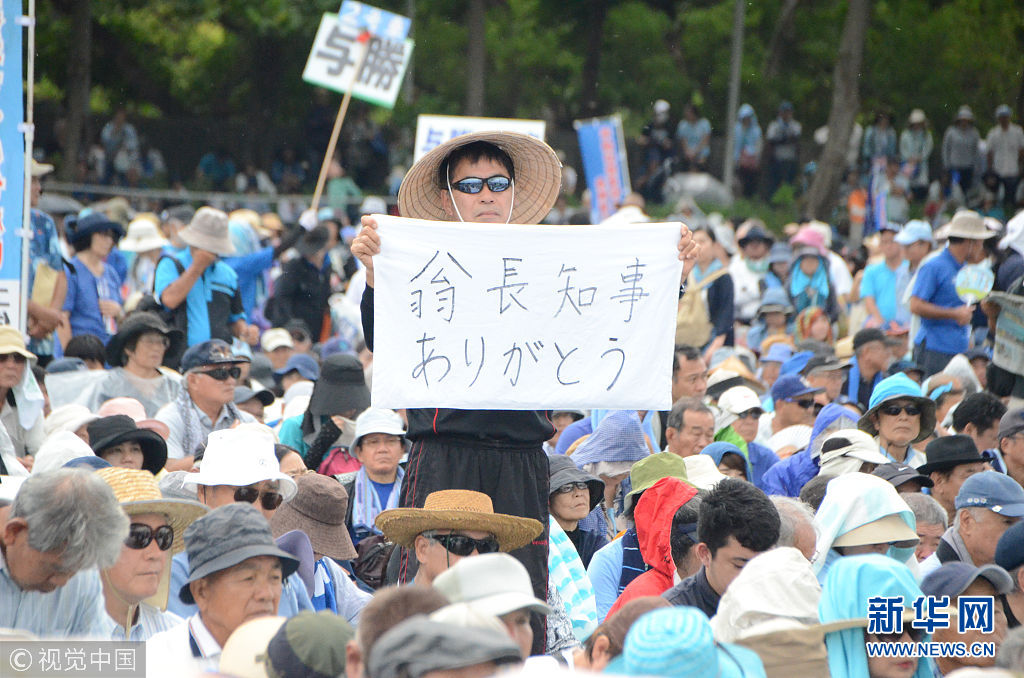 當(dāng)?shù)貢r(shí)間2018年8月11日,日本沖繩縣約7萬民眾8月11日在那霸市舉行大規(guī)模集會(huì),反對駐日美軍將普天間基地遷往名護(hù)市邊野古地區(qū),要求駐日美軍放棄在邊野古地區(qū)新建基地并立即關(guān)閉普天間機(jī)場。當(dāng)天,日本東京都、大阪府、福岡、北海道縣等地民眾也同時(shí)舉行集會(huì)和游行,抗議日本政府推進(jìn)邊野古地區(qū)填海施工。(圖片來源:視覺中國)