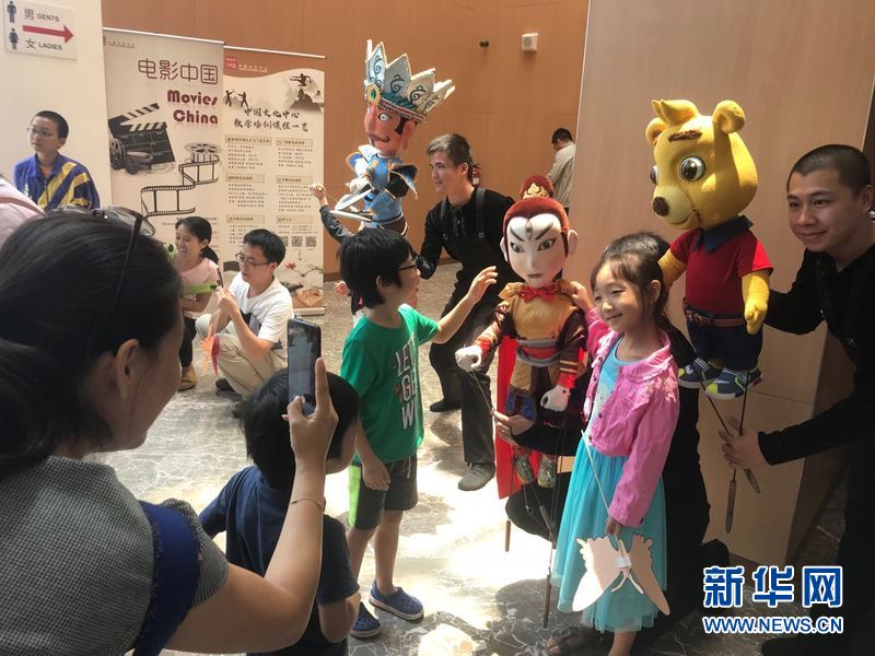 圖為小觀眾與木偶合影。新華社記者王麗麗攝
