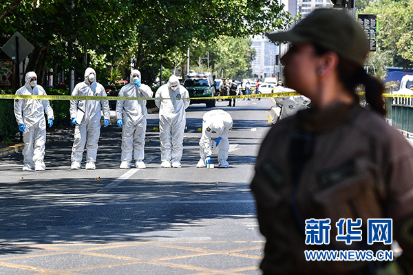1月4日,在智利首都圣地亞哥,特警在爆炸襲擊現(xiàn)場(chǎng)調(diào)查。新華社發(fā)(豪爾赫·比列加斯攝)