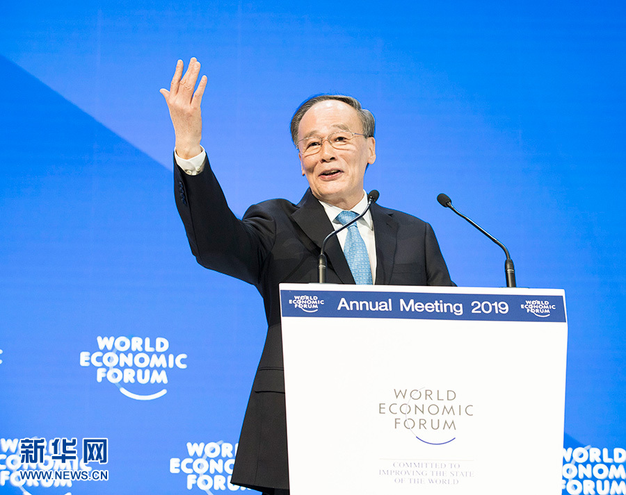 當(dāng)?shù)貢r間1月23日,國家副主席王岐山出席達沃斯世界經(jīng)濟論壇2019年年會,發(fā)表題為“堅定信心,攜手前行,共創(chuàng)未來”的致辭并回答提問。 新華社記者 黃敬文 攝