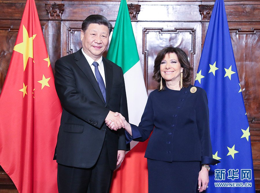3月22日,國家主席習(xí)近平在羅馬會見意大利參議長卡塞拉蒂。 新華社記者 姚大偉 攝