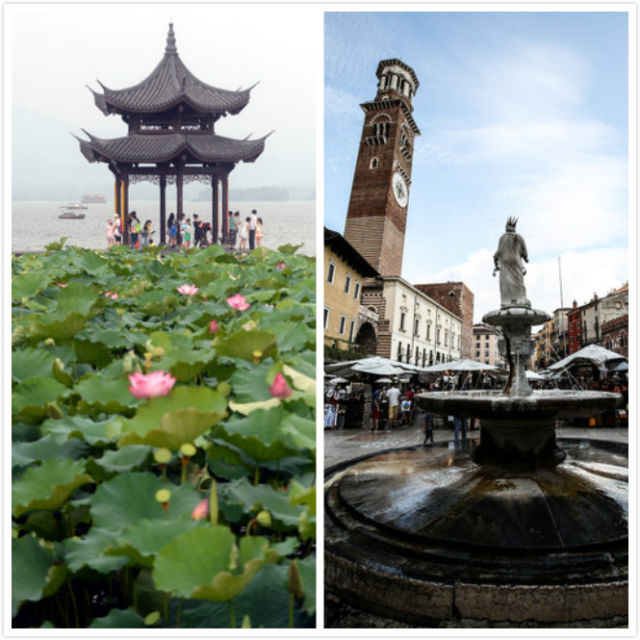 這是一張拼版照片,左為杭州,右為維羅納。新華社發(fā)