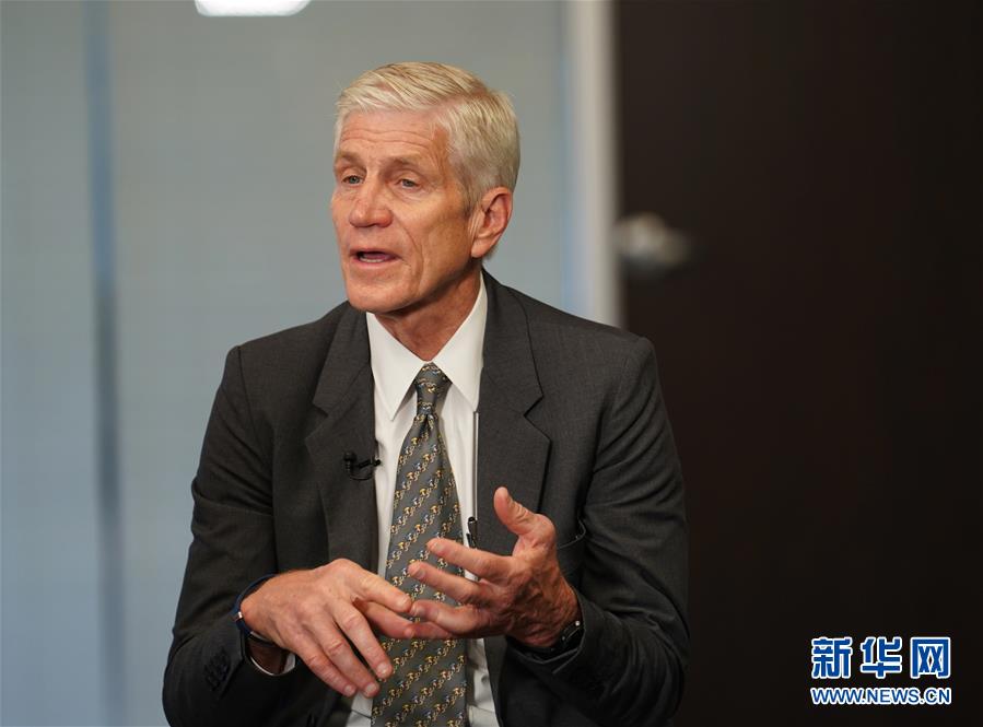 2019年5月23日,在美國(guó)華盛頓,美國(guó)自行車零部件供應(yīng)商協(xié)會(huì)理事會(huì)成員鮑勃·馬格維丘斯接受采訪。新華社記者 劉杰 攝