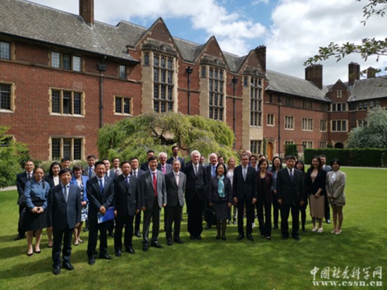 北京時(shí)間6月17日,由中國(guó)社會(huì)科學(xué)出版社,中國(guó)社會(huì)科學(xué)院全球戰(zhàn)略智庫(kù),劍橋大學(xué)耶穌學(xué)院中國(guó)中心,泰勒弗朗西斯集團(tuán)共同主辦的《“一帶一路”手冊(cè)》(Routledge Handbook of the Belt and Road)新書發(fā)布會(huì)暨“一帶一路”倡議研討會(huì)在英國(guó)劍橋大學(xué)耶穌學(xué)院成功舉行。中國(guó)社會(huì)科學(xué)院副院長(zhǎng)、學(xué)部委員蔡昉 ,劍橋大學(xué)中國(guó)中心主任、教授彼得·諾蘭 (Peter Nolan )出席大會(huì)并作主旨發(fā)言。中國(guó)社會(huì)科學(xué)出版社社長(zhǎng)趙劍英,泰勒弗朗西斯集團(tuán)全球圖書業(yè)務(wù)總裁貝謹(jǐn)立(Jeremy North)分別代表中外出版方致辭。發(fā)布會(huì)由中國(guó)社會(huì)科學(xué)院全球戰(zhàn)略智庫(kù)常務(wù)副理事長(zhǎng)王靈桂主持。