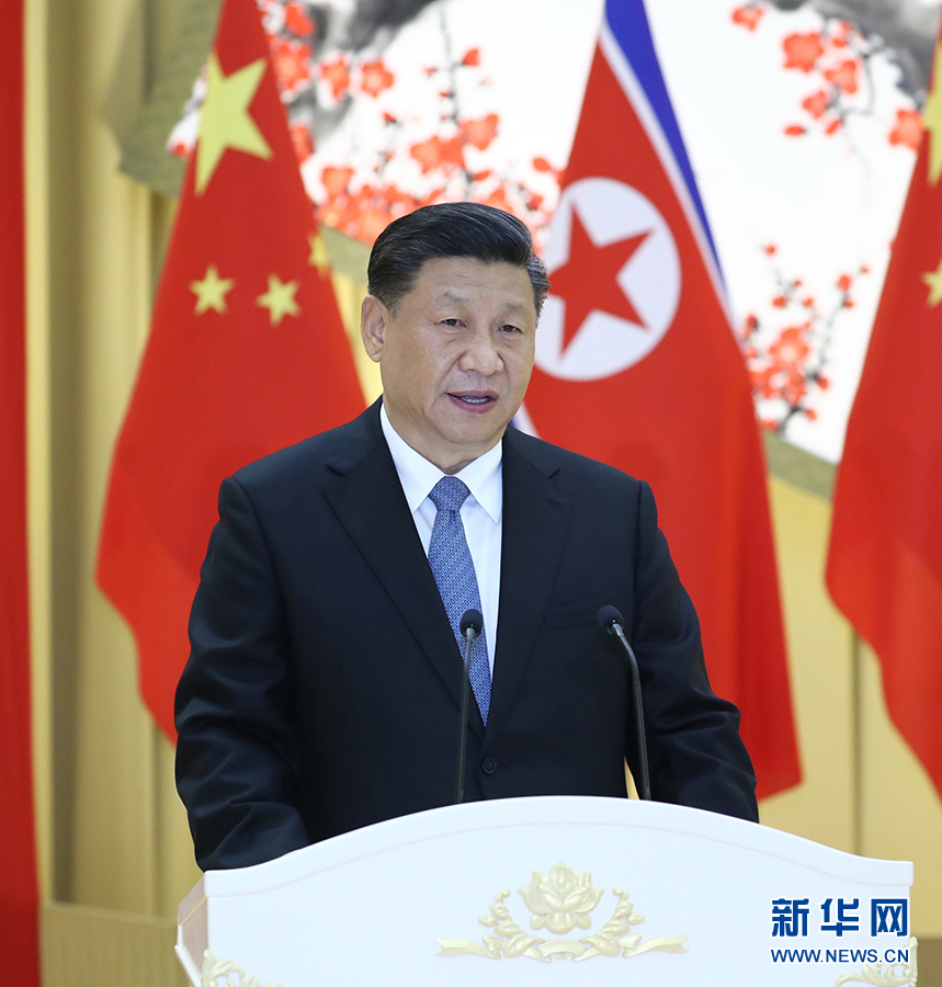 習(xí)近平在致辭中指出,回顧70年中朝關(guān)系史,雙方老一輩領(lǐng)導(dǎo)人親手締造了中朝傳統(tǒng)友誼,為我們留下了共同寶貴財(cái)富。盡管滄海桑田、風(fēng)云變幻,中朝友誼歷久彌堅(jiān)。剛才,我同金正恩委員長(zhǎng)進(jìn)行了富有成果的會(huì)談,共同擘畫中朝關(guān)系美好未來(lái),達(dá)成一系列重要共識(shí)。我們一致認(rèn)為,中朝雙方要堅(jiān)定不移傳承弘揚(yáng)傳統(tǒng)友誼,續(xù)寫時(shí)代新篇章。我們一致認(rèn)為,政治解決半島問(wèn)題是人心所向、大勢(shì)所趨,要繼續(xù)高舉和平對(duì)話旗幟,為實(shí)現(xiàn)地區(qū)乃至世界和平、穩(wěn)定、繁榮作出新的更大貢獻(xiàn)。