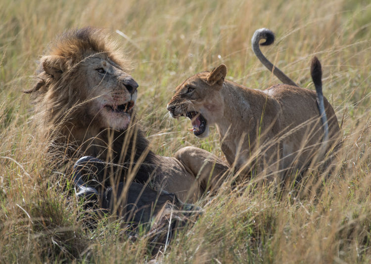 同一個(gè)獅群的雄獅之間很少會(huì)發(fā)生肢體沖突。相反,它們之間非常默契并相互依賴,不僅共同保護(hù)獅群免受斑鬣狗、大象和野牛的騷擾,而且共同抵御其他獅群或外來(lái)流浪獅的入侵。