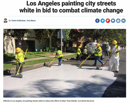 常見(jiàn)的黑色柏油馬路很容易吸收熱量,加劇熱島效應(yīng)。近年來(lái),美國(guó)洛杉磯就想出了新法子來(lái)降低柏油馬路的加熱作用:使用一種特殊材料,給馬路“穿上”一件“白色外套”。