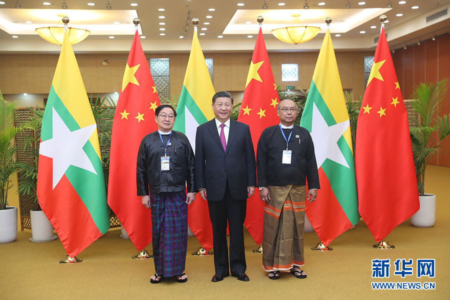 當(dāng)晚,習(xí)近平同緬甸聯(lián)邦議會(huì)議長(zhǎng)兼人民院議長(zhǎng)蒂昆密和民族院議長(zhǎng)曼溫凱丹進(jìn)行了友好交談,并和緬甸主要政黨領(lǐng)導(dǎo)人集體合影留念。