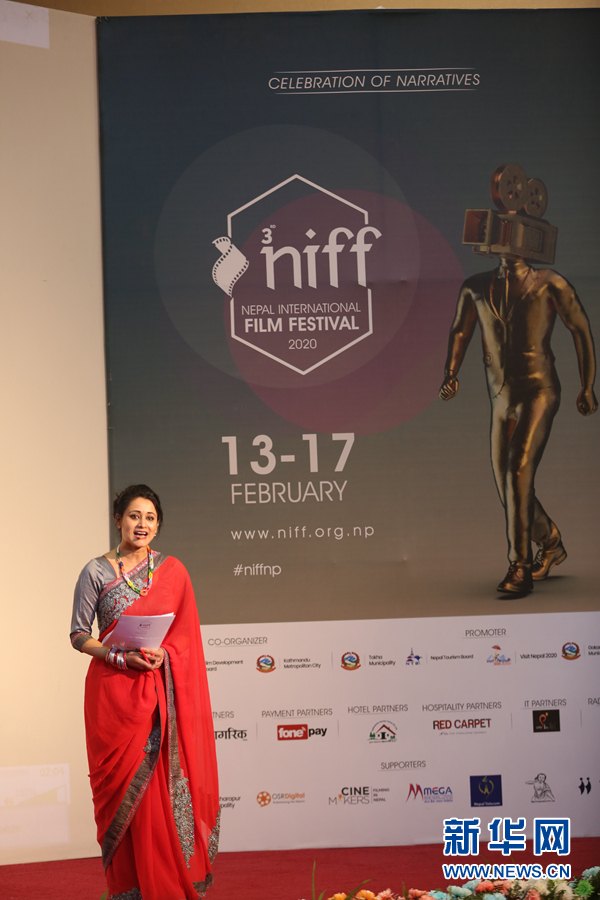 2月17日,尼泊爾加德滿都市政大廳,優(yōu)雅美麗的主持人在第三屆尼泊爾國際電影節(jié)在加德滿都閉幕儀式上。本屆電影節(jié)2月13日開始,一共有來自40個(gè)國家和地區(qū)的80部影片入選,其中中國和哈薩克斯坦聯(lián)合拍攝的《音樂家》作為開幕電影,備受關(guān)注。記者 唐薇 攝