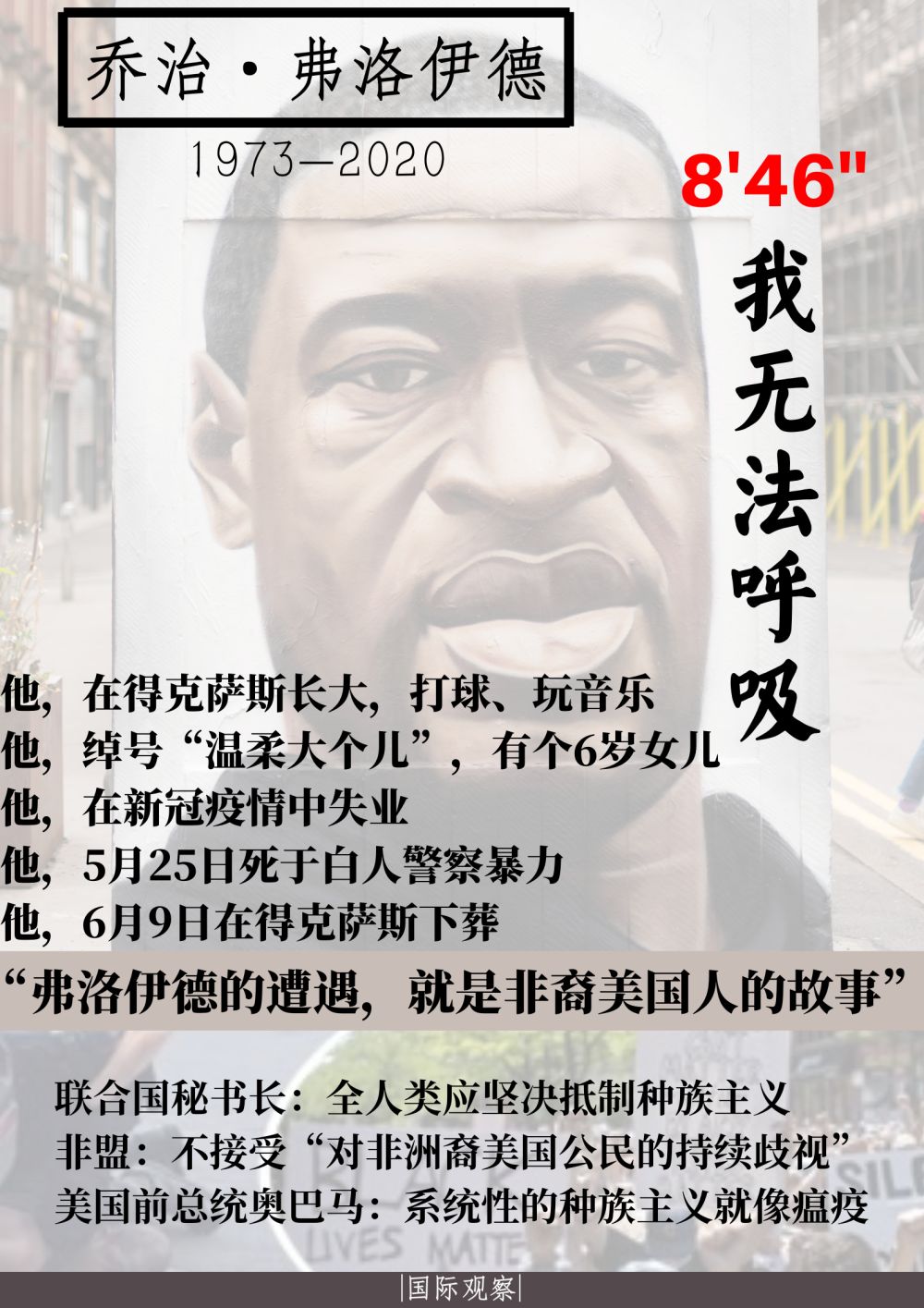 他死前“我無法呼吸”的懇求,在大選年和新冠疫情中,把美國帶入“痛苦時(shí)刻”,將長(zhǎng)久地載入美國當(dāng)代史。