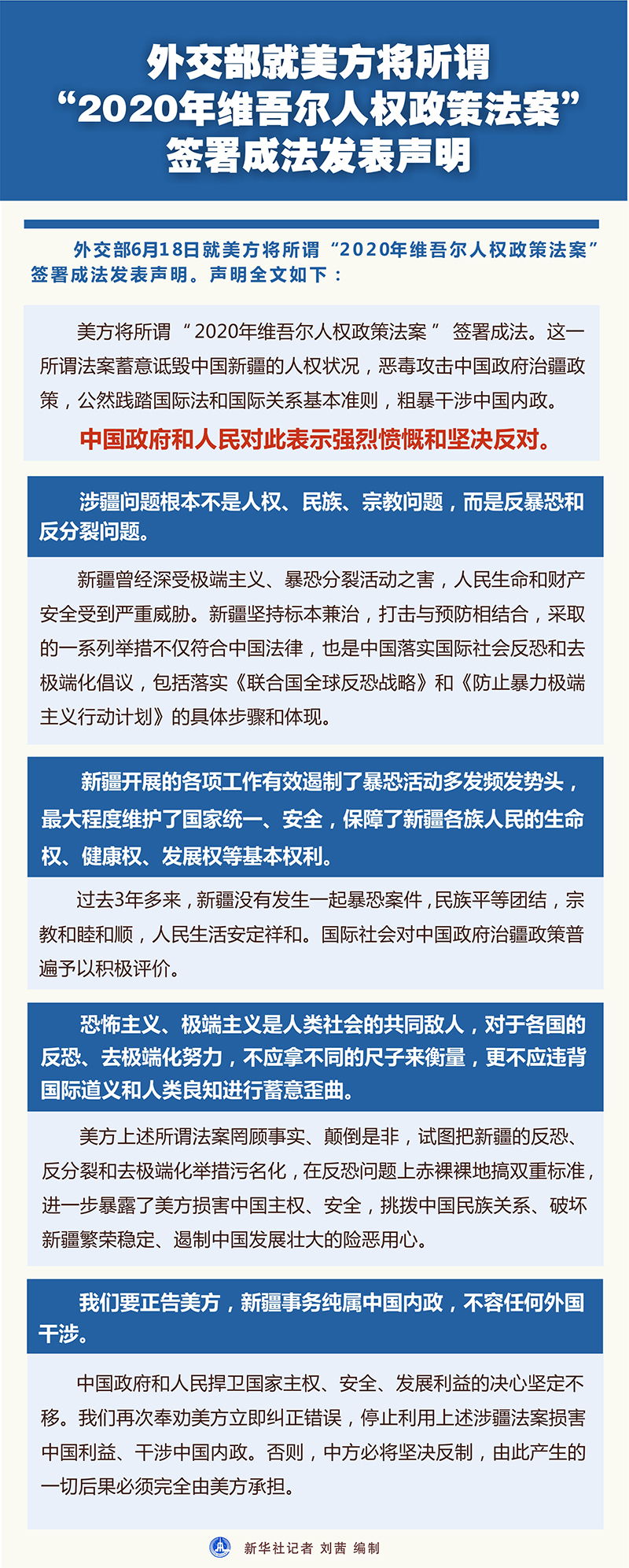 外交部就美方將所謂“2020年維吾爾人權(quán)政策法案”簽署成法發(fā)表聲明-新華網(wǎng)